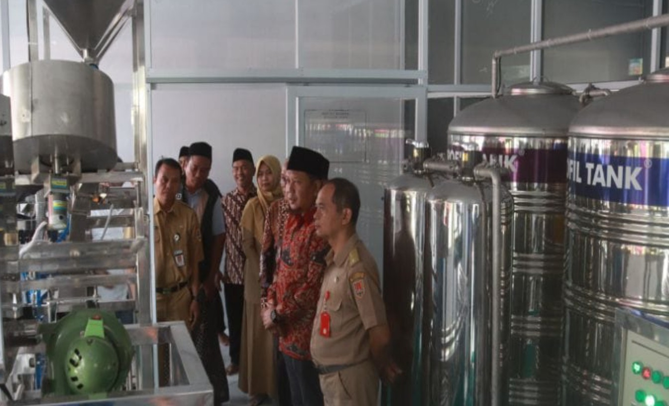 Para tamu juga diajak melihat langsung proses pengolahan air, mulai dari pencucian galon, pemrosesan berstandar AMDK, hingga pengisian air otomatis.
