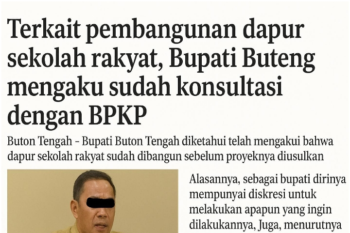 Buton Tengah, Sulawesi Tenggara – Kebijakan pembangunan Dapur Sekolah Rakyat di Kabupaten Buton Tengah (Buteng), Sulawesi Tenggara, menuai sorotan tajam dan polemik di tengah masyarakat. Hal ini terjadi setelah Bupati Buteng, Dr. H. Azhari, secara terbuka mengakui bahwa proyek tersebut dieksekusi sebelum adanya payung hukum penganggaran resmi dalam Anggaran Pendapatan dan Belanja Daerah (APBD).