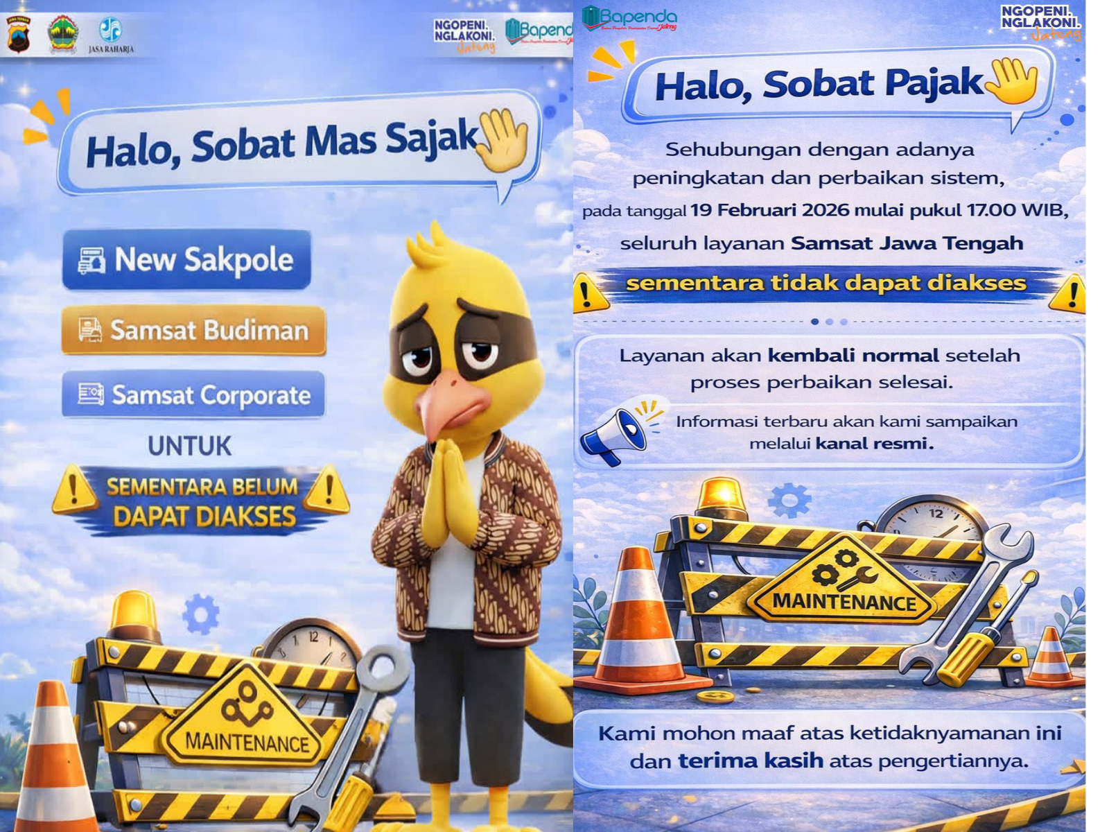Demi memastikan program relaksasi pajak tersebut berjalan optimal, beberapa kanal pembayaran digital untuk sementara waktu dinonaktifkan. Penyesuaian sistem ini berdampak pada sejumlah aplikasi dan layanan unggulan yang biasa digunakan masyarakat, antara lain: