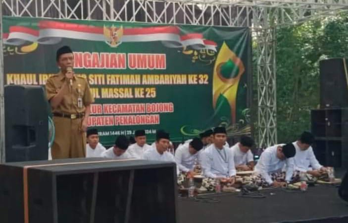 Pekalongan, Jawa Tengah – Bupati Pekalongan Fadia Arafiq yang diwakili oleh Asisten I Pemerintahan dan Kesra Setda Kabupaten Pekalongan, Wiryo Santoso, menghadiri acara pengajian umum dalam rangka memperingati Khaul ke-32 Ibu Agung Siti Fatimah Ambariyah di Desa Bukur, Kecamatan Bojong, pada hari Senin, 29 Juli 2024.