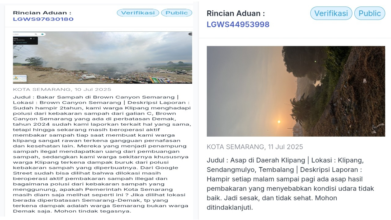 “Hampir setiap malam sampai pagi ada asap hasil pembakaran yang menyebabkan kondisi udara tidak baik. Jadi sesak, dan tidak sehat. Mohon ditindaklanjuti,” tulis pelapor pada kanal Laporgub.