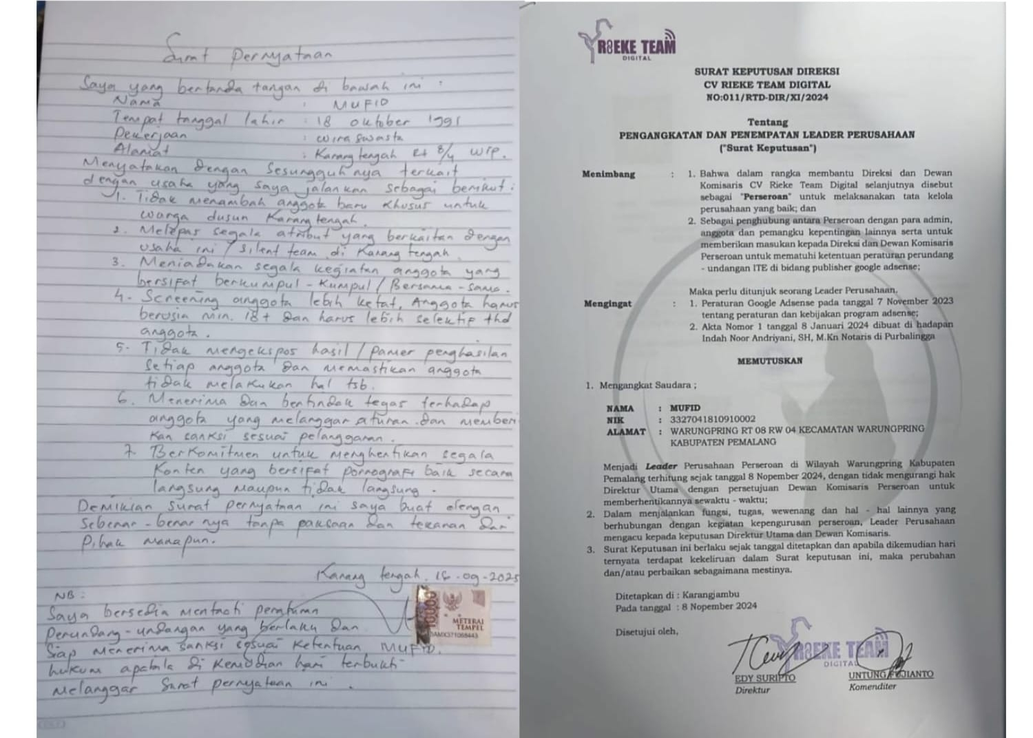 Berdasarkan keterangan warga serta surat pernyataan yang telah dihimpun, bisnis milik Mufid diduga menghasilkan pendapatan besar dari aktivitas daring yang tidak jelas sumbernya.