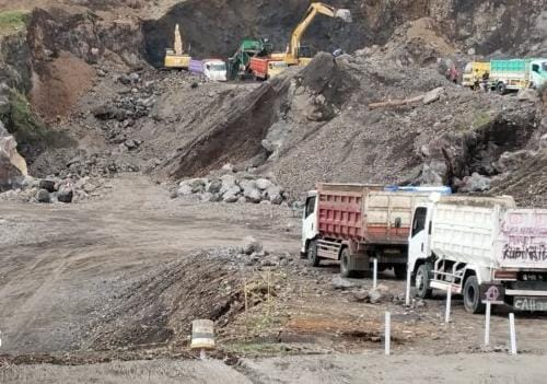 Pantauan di lapangan, tidak ditemukan papan nama perusahaan ataupun keterangan jenis material yang dikeruk. Namun, alat berat dan dump truk terlihat hilir-mudik mengangkut batu serta padas urug dalam jumlah besar. Diperkirakan omzet pengelola mencapai jutaan rupiah setiap hari.