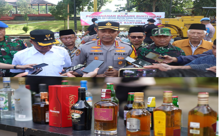 Banyumas, Jawa Tengah – Polresta Banyumas memusnahkan ribuan barang bukti minuman keras (miras) dalam rangka Operasi Lilin Candi 2025 guna menjaga keamanan dan ketertiban masyarakat menjelang perayaan Natal 2025 dan Tahun Baru 2026. Kegiatan pemusnahan berlangsung di halaman belakang Mapolresta Banyumas, Jumat (19/12/2025) pagi.