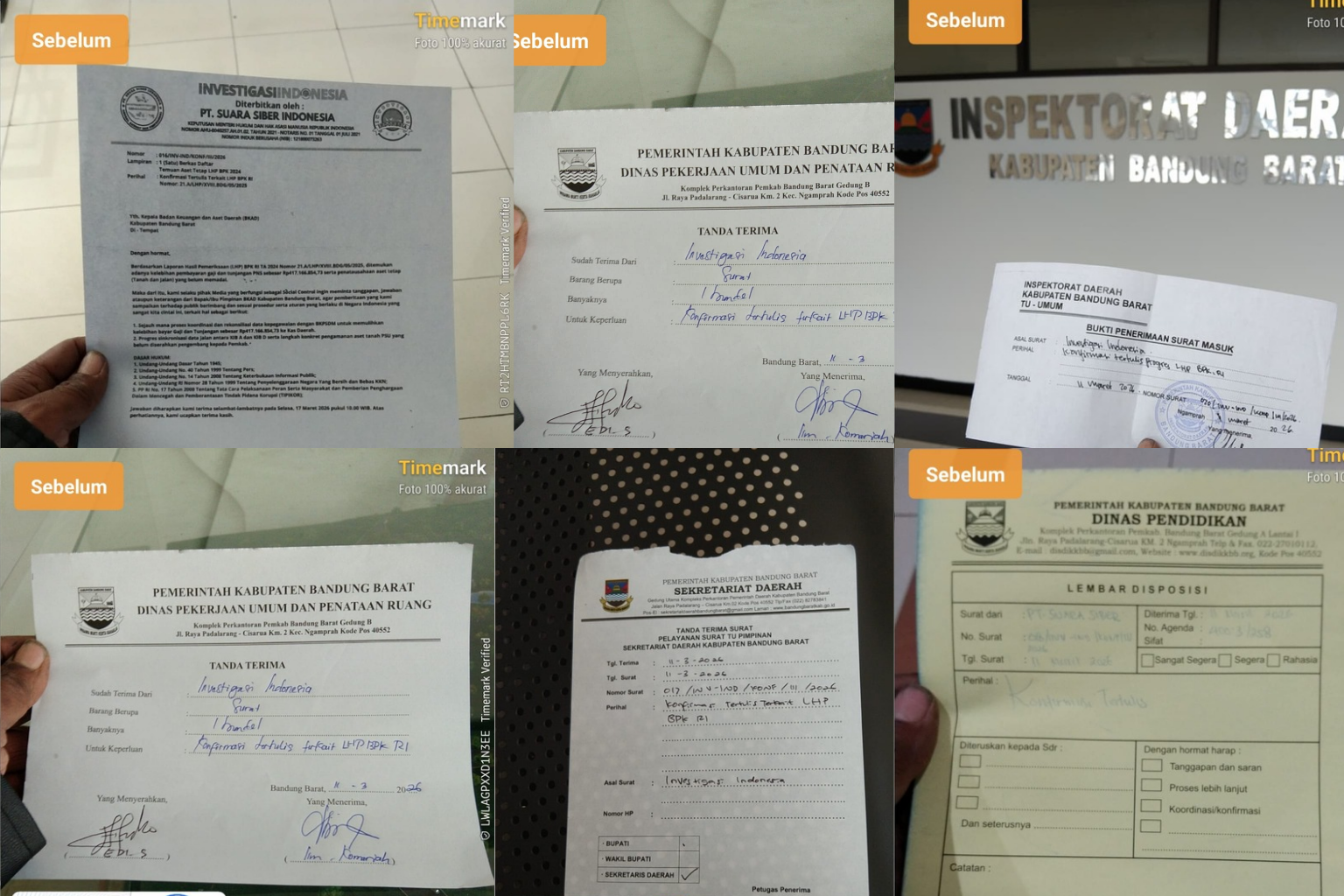 Guna memenuhi asas keberimbangan berita (cover both sides), Redaksi investigasiindonesia.co.id telah melayangkan lima surat konfirmasi tertulis secara serentak pada 11 Maret 2026. Surat tersebut ditujukan kepada Sekretaris Daerah (Sekda), Kepala Dinas PUPR, Kepala Dinas Pendidikan, Kepala BKAD, hingga Inspektorat Daerah KBB. Namun, hingga tenggat waktu yang diberikan berlalu (Selasa, 17/3/2026), tidak ada satu pun pejabat yang berani memberikan klarifikasi publik terkait progres pengembalian uang negara tersebut.