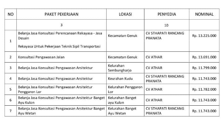 Berdasarkan informasi yang diperoleh, S terindikasi menerima proyek jasa perencanaan dan pengawasan arsitektur yang berasal dari Kecamatan Genuk, baik saat dipimpin oleh almarhum Camat Ali maupun penerusnya, Camat Suroto.