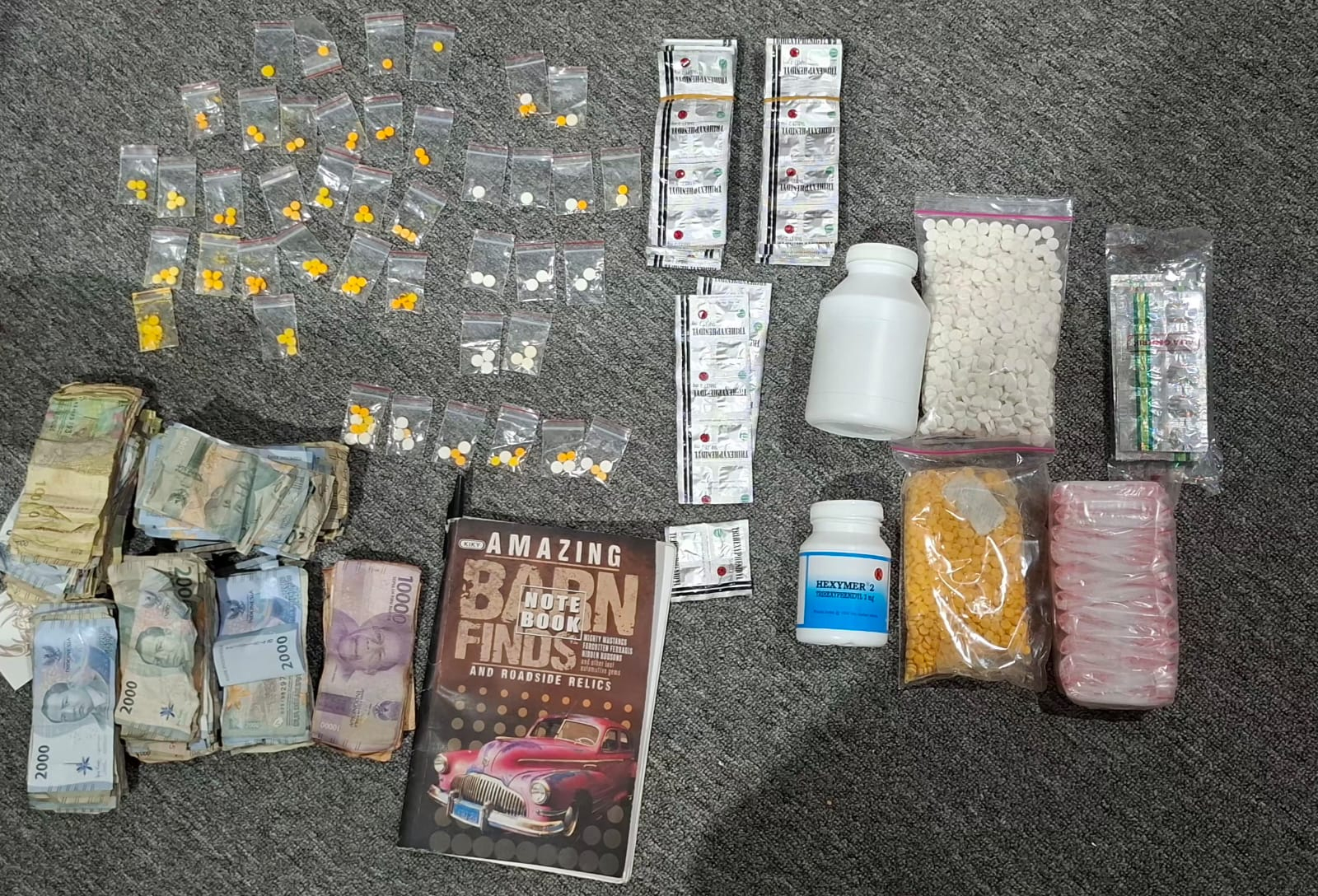Selain ribuan pil, polisi juga menyita uang tunai hasil penjualan, buku catatan, dan telepon seluler sebagai alat komunikasi transaksi.
