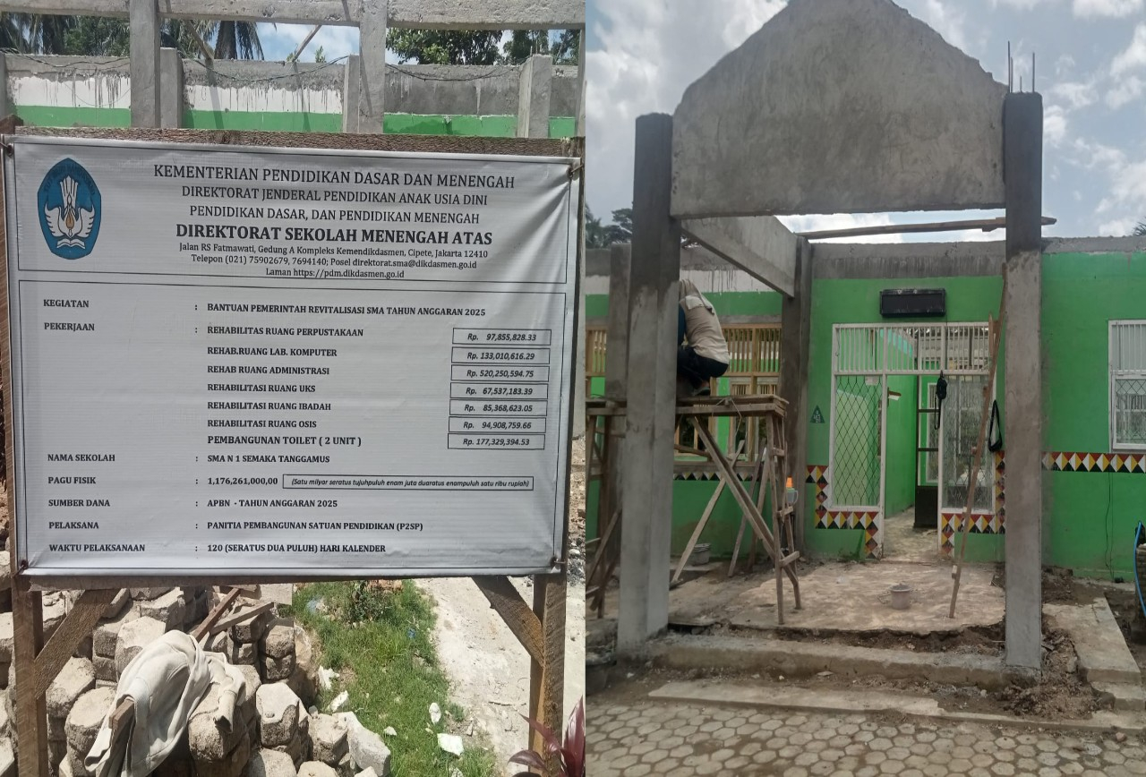Proyek renovasi gedung SMA Negeri 1 Semaka, Kabupaten Tanggamus, menjadi sorotan publik. Padahal, proyek yang dibiayai oleh APBN melalui Kementerian Pendidikan ini bertujuan untuk meningkatkan sarana dan prasarana pendidikan dalam program revitalisasi sekolah.