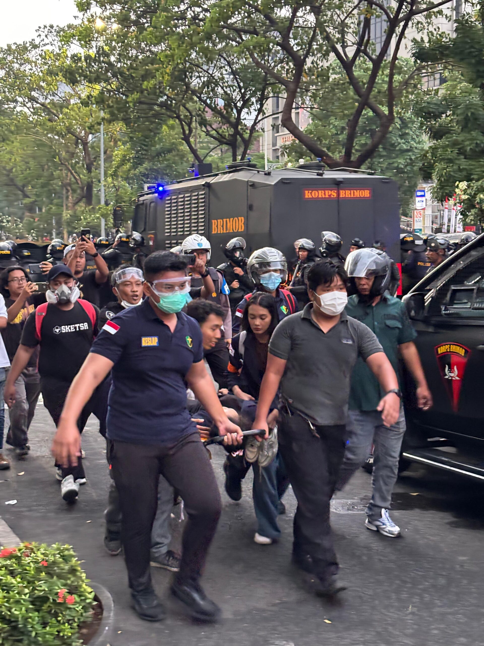 Namun, situasi memburuk sekitar pukul 15.30 WIB. Sekelompok pendemo dari jaringan anarko memicu kekacauan dengan melempar batu, petasan, dan bahkan bom molotov ke arah petugas. Fasilitas umum seperti pagar, pot bunga, dan lampu taman dirusak dan dijadikan alat serangan.