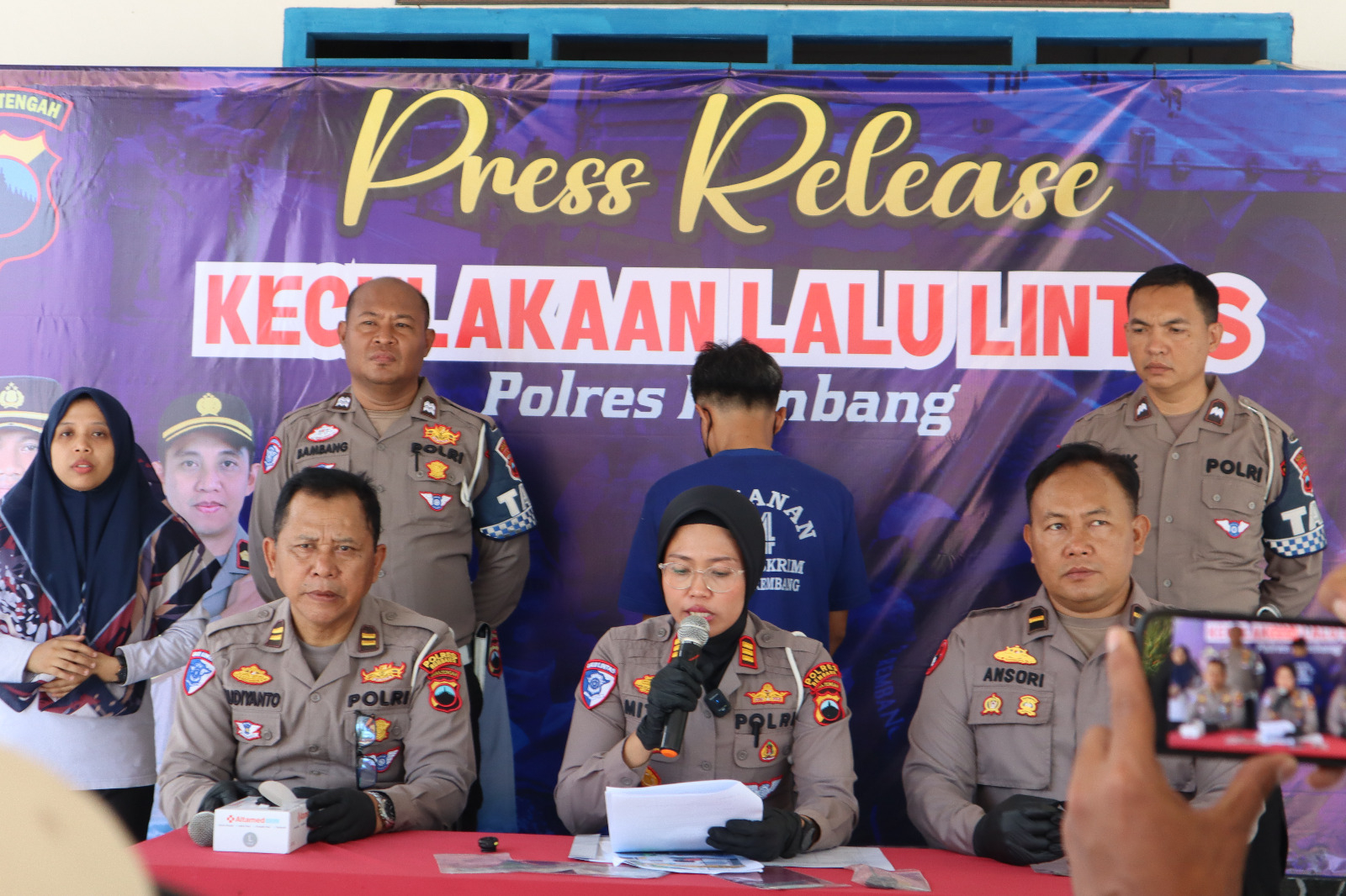 Rembang, Jawa Tengah – Satuan Lalu Lintas (Satlantas) Polres Rembang menggelar konferensi pers terkait pengungkapan kasus kecelakaan lalu lintas jenis tabrak lari yang terjadi di ruas Jalan Pantura Lasem, Kabupaten Rembang.