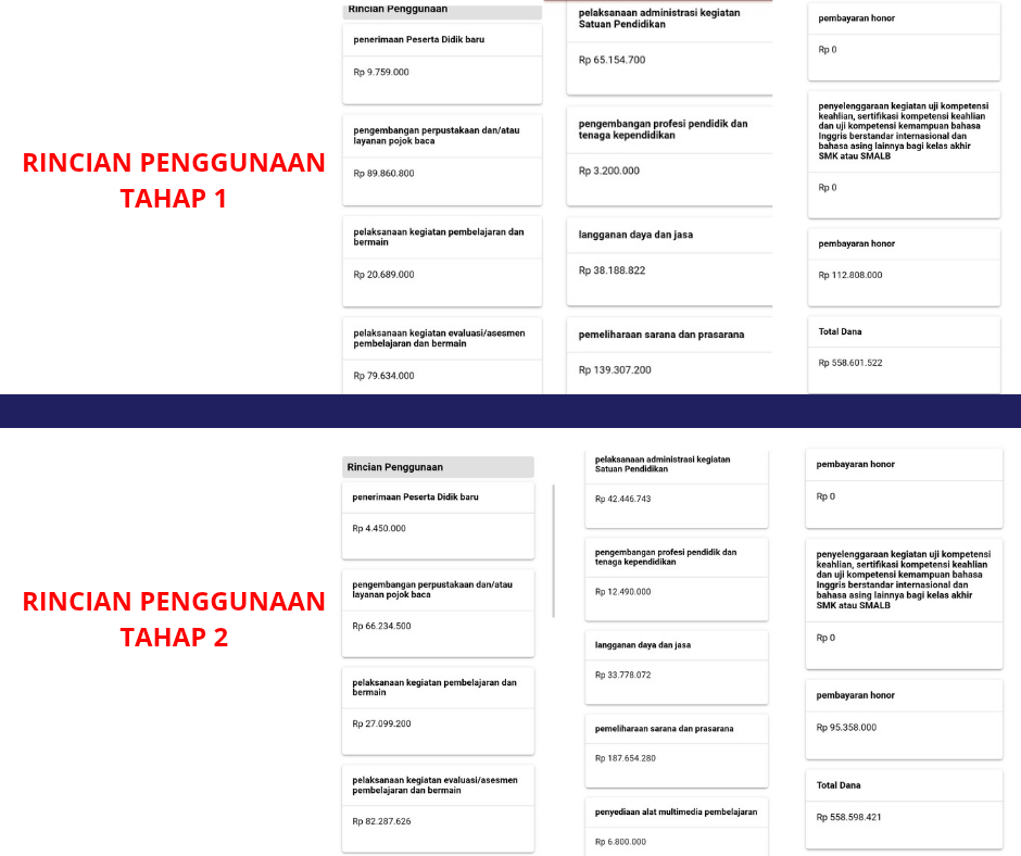 Sementara dari hasil investigasi, SMP Negeri 3 Brebes termasuk sekolah penerima Anggaran Dana Bos dari pemerintah setiap tahunnya dan untuk tahun 2024 didapatkan data bahwa SMP Negeri 3 Brebes menerima Anggaran Dana Bos sebesar Rp. 558.600.000 untuk tahap pertama yang diterima pada tanggal 18 Januari 2024 dan untuk tahap kedua sebesar Rp 558.596.284 yang diterima pada tanggal 13 Agustus 2024.