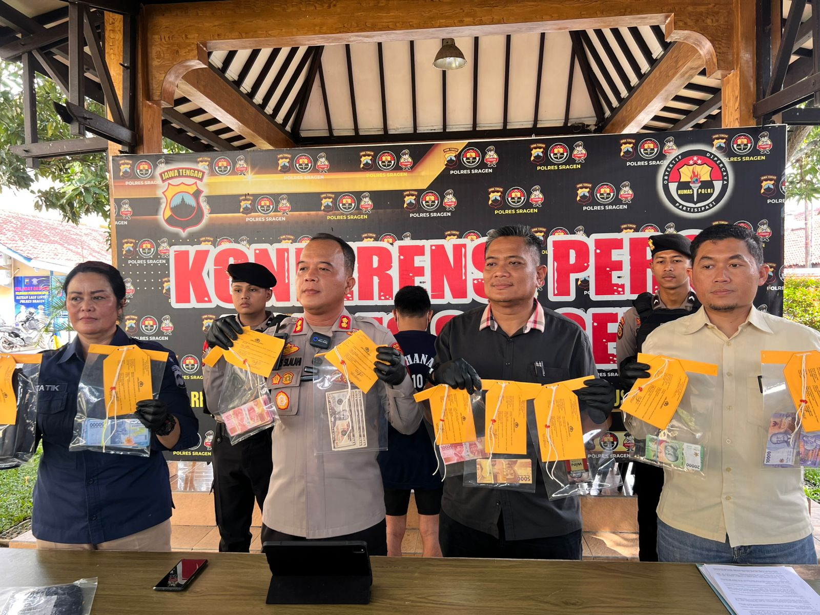 Kapolres Sragen, AKBP Petrus Parningotan Silalahi, dalam konferensi pers pada Selasa (27/5/2025), mengimbau masyarakat untuk lebih waspada terhadap uang yang diterima dalam setiap transaksi.