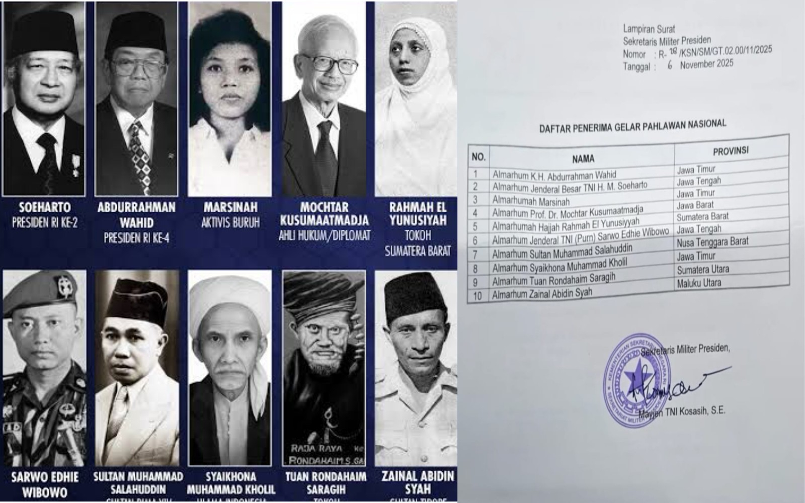 Jakarta — Presiden Prabowo Subianto resmi menetapkan 10 tokoh yang dianugerahi gelar Pahlawan Nasional, bertepatan dengan peringatan Hari Pahlawan.