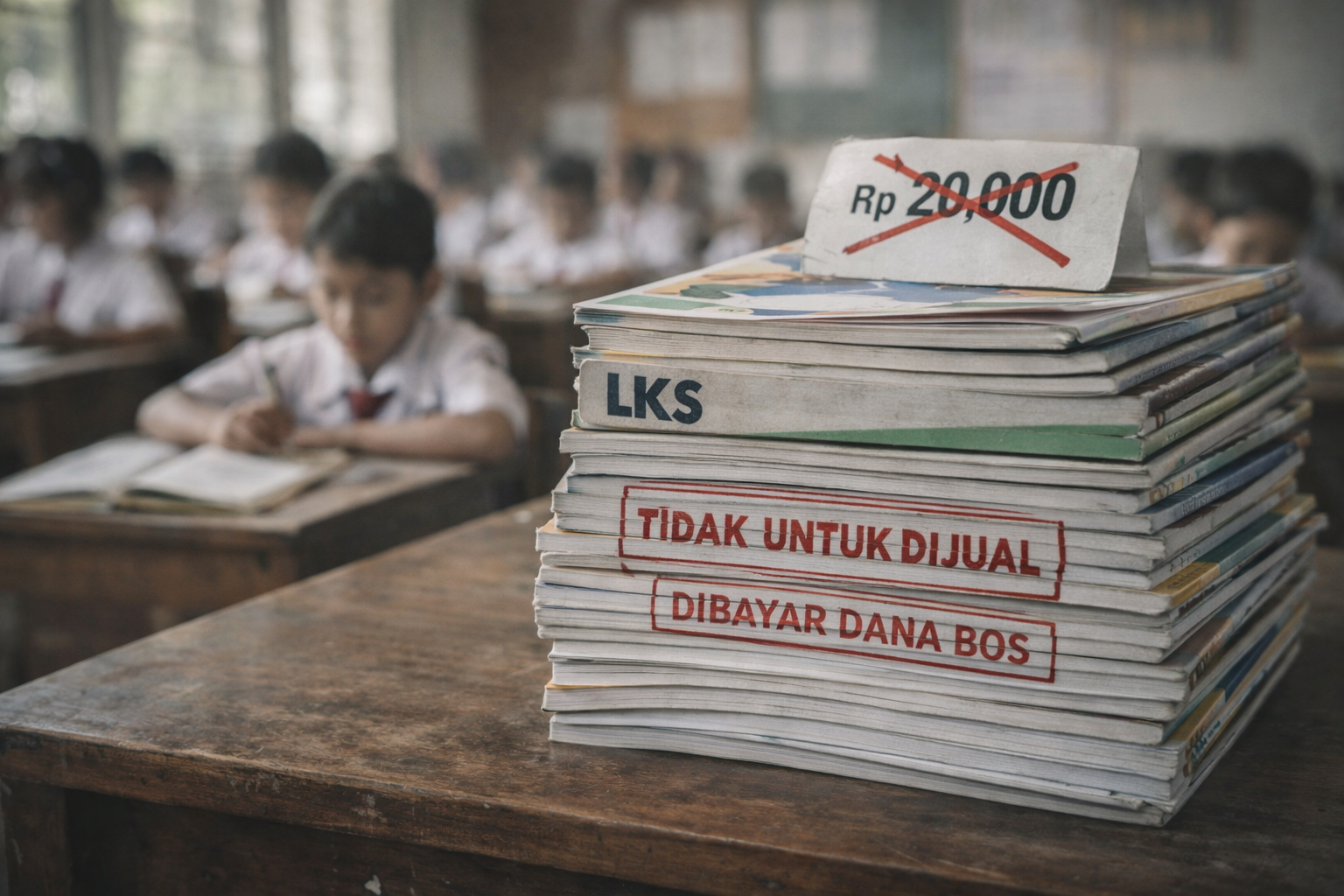 Jepara, Jawa Tengah – Praktik komersialisasi bahan ajar berupa Lembar Kerja Siswa (LKS) di lingkungan sekolah negeri menjadi perhatian serius. Merujuk pada regulasi pendidikan terbaru, larangan jual LKS di sekolah berlaku mutlak bagi seluruh jenjang SD dan SMP Negeri, mengingat biaya pengadaan materi pembelajaran telah sepenuhnya terakomodasi melalui Dana Bantuan Operasional Satuan Pendidikan (BOSP).