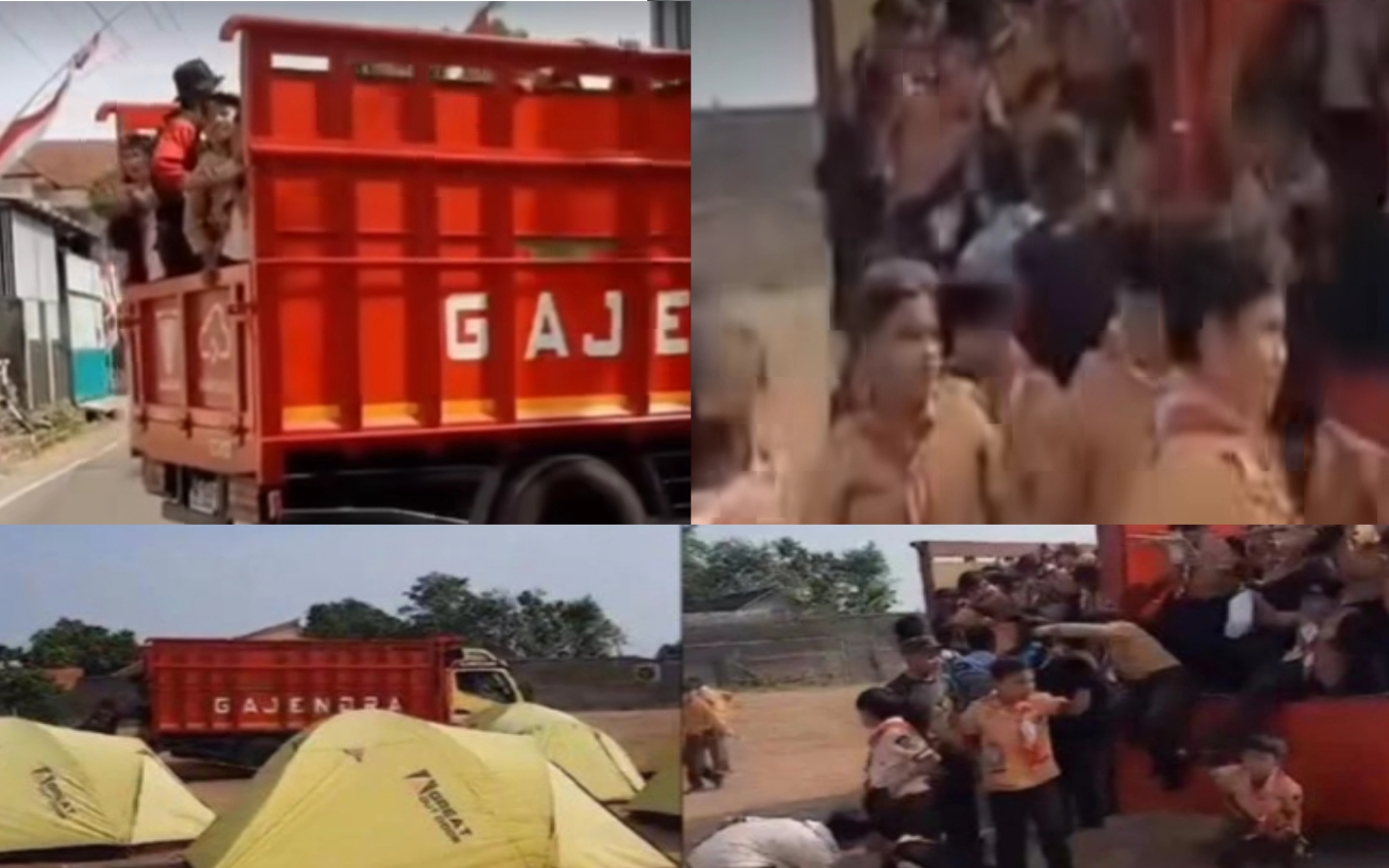 Surakarta, Jawa Tengah – Sebuah video yang memperlihatkan siswa Sekolah Dasar (SD) di bawah naungan Yayasan Al Abidin Solo menaiki truk terbuka untuk kegiatan kemah menjadi viral di media sosial. Video yang salah satunya diunggah akun Facebook Berita Realita itu menyebutkan bahwa anak-anak diangkut melalui jalan tol dengan kondisi berdesakan, hingga beberapa siswa dilaporkan muntah karena kesulitan bernapas.
