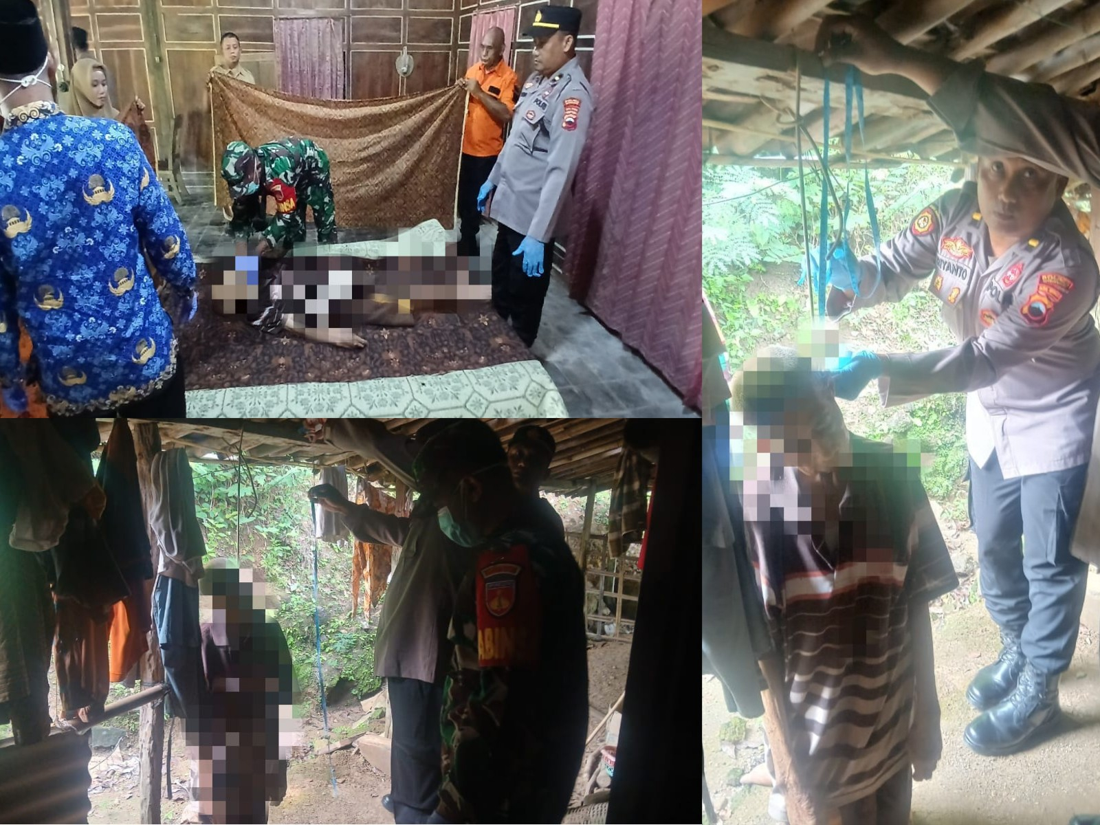 Korban diketahui bernama Katimin (83), seorang petani yang tinggal seorang diri. Menurut saksi Mesran (45), yang biasa membantu merawat korban, ia sempat mengantarkan sarapan sekitar pukul 06.00 WIB dan masih berbincang dengan korban. Namun, saat kembali sekitar pukul 08.00 WIB, ia menemukan korban sudah tergantung di teras samping rumah bagian timur.