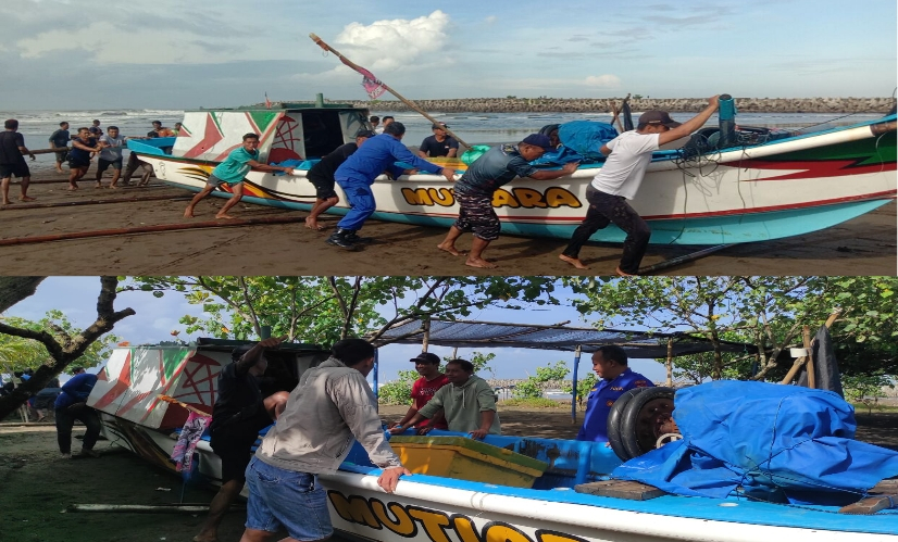 Peristiwa yang terjadi sekitar pukul 06.30 WIB ini mengakibatkan perahu mengalami kerusakan cukup parah. Beruntung, empat Anak Buah Kapal (ABK) yang berada di dalamnya berhasil menyelamatkan diri dari ganasnya arus muara.
