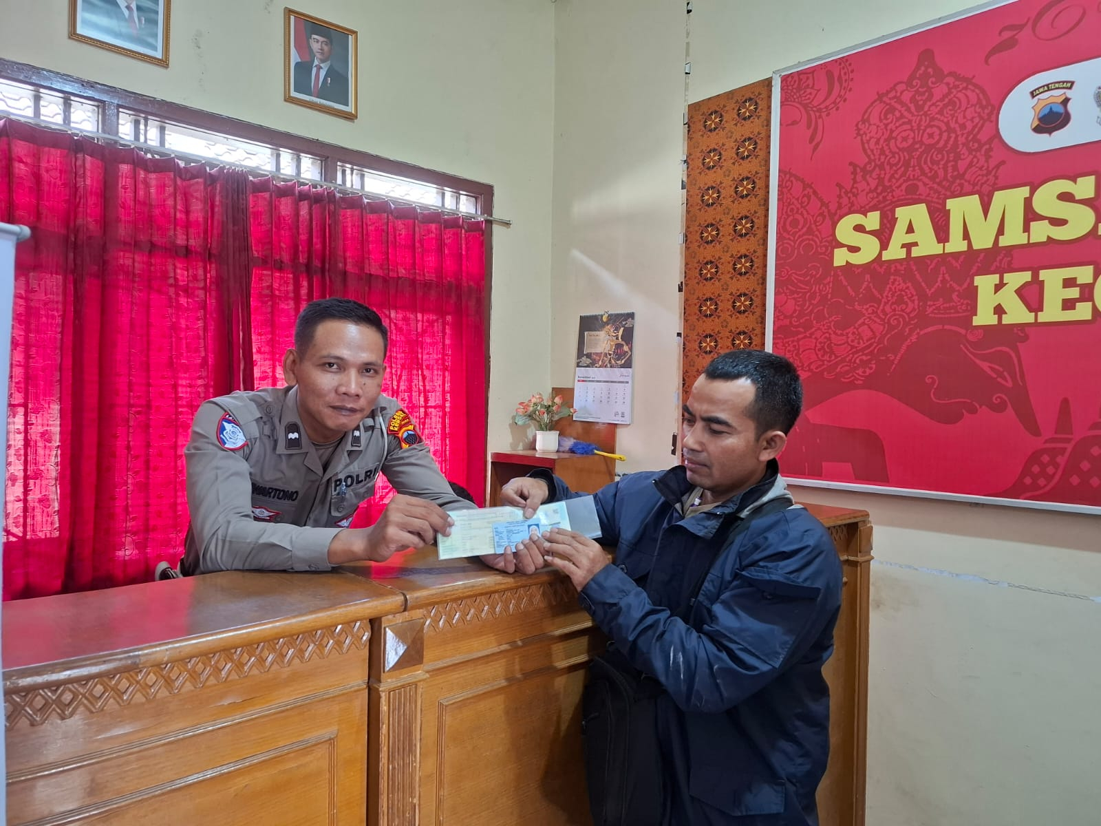 Kendal, Jawa Tengah — Dalam upaya meningkatkan mutu pelayanan publik, anggota Satuan Lalu Lintas Polres Kendal, Aiptu Suwartono, memberikan pelayanan prima kepada masyarakat di Samsat Paten Boja, Selasa (4/11/2025).