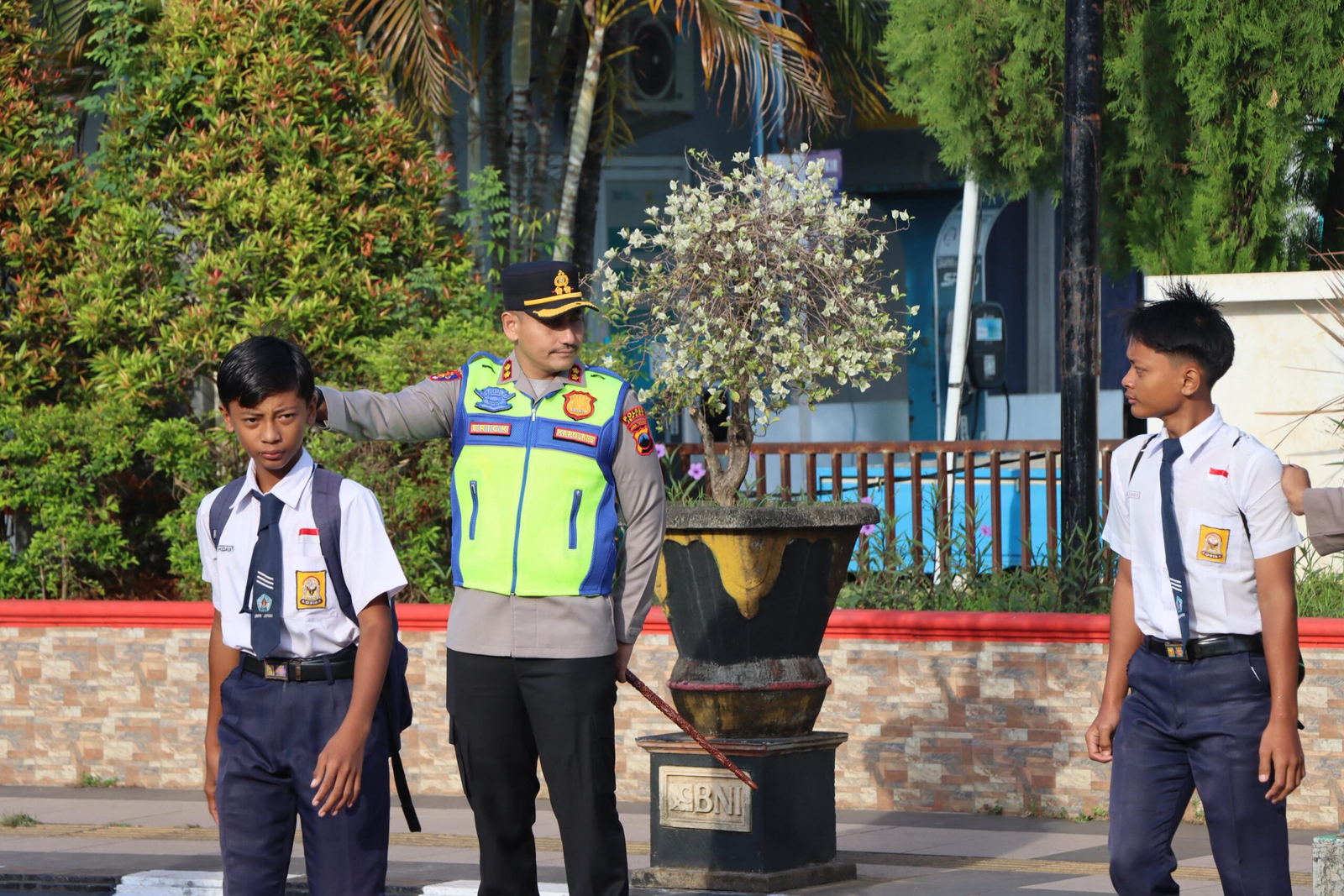 Sejak pagi hari, kehadiran anggota polisi terlihat di simpang-simpang jalan, depan sekolah, pasar, dan kawasan padat aktivitas lainnya. Mereka tidak hanya mengatur lalu lintas, tetapi juga memberikan imbauan keselamatan kepada pengguna jalan.