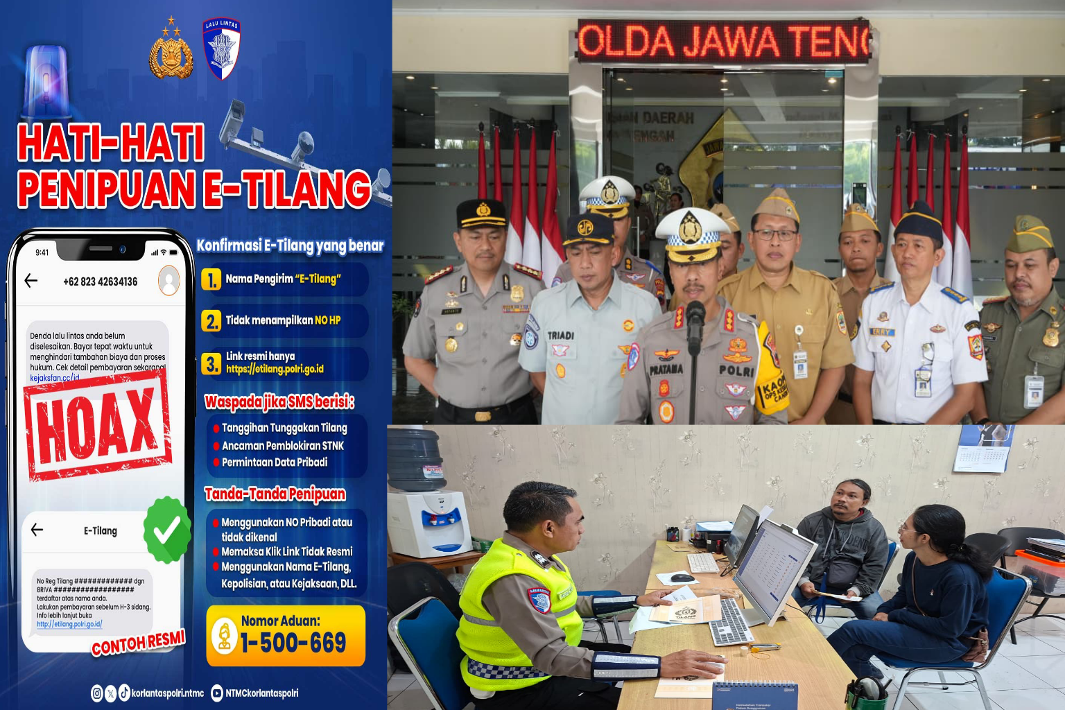 “Pemberitahuan pelanggaran ETLE hanya dikirimkan melalui surat fisik secara resmi ke alamat pemilik kendaraan sesuai data STNK. Masyarakat tidak perlu panik jika menerima pesan singkat, karena konfirmasi resmi hanya dilakukan melalui situs https://konfirmasi-etle.polri.go.id/ atau datang langsung ke posko ETLE,” jelas Kombes Pol Pratama di Kota Semarang, Kamis (5/2/2026).