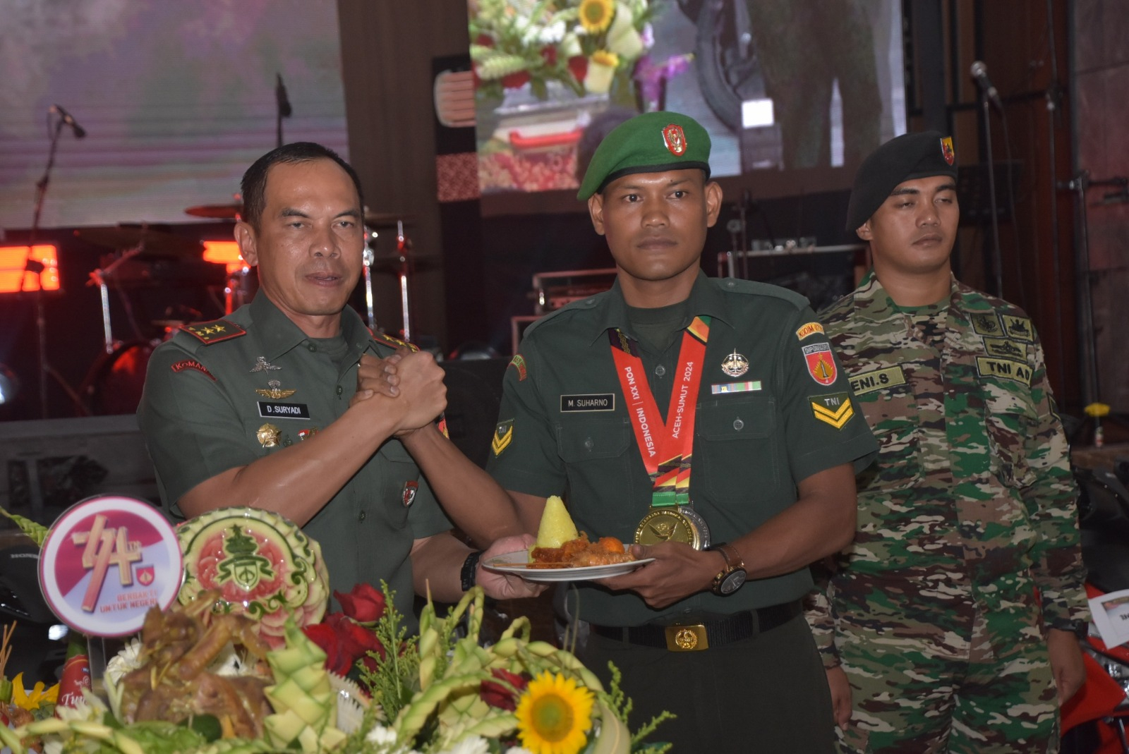 Dalam sambutannya, Pangdam IV/Diponegoro menyampaikan rasa bangga atas raihan medali emas yang diperoleh Sertu Mandeg Suharno di PON 2024. “Prestasi ini tidak hanya mengharumkan nama satuan, tetapi juga menjadi inspirasi bagi seluruh prajurit untuk terus berkarya dan berprestasi,” ujar Pangdam.