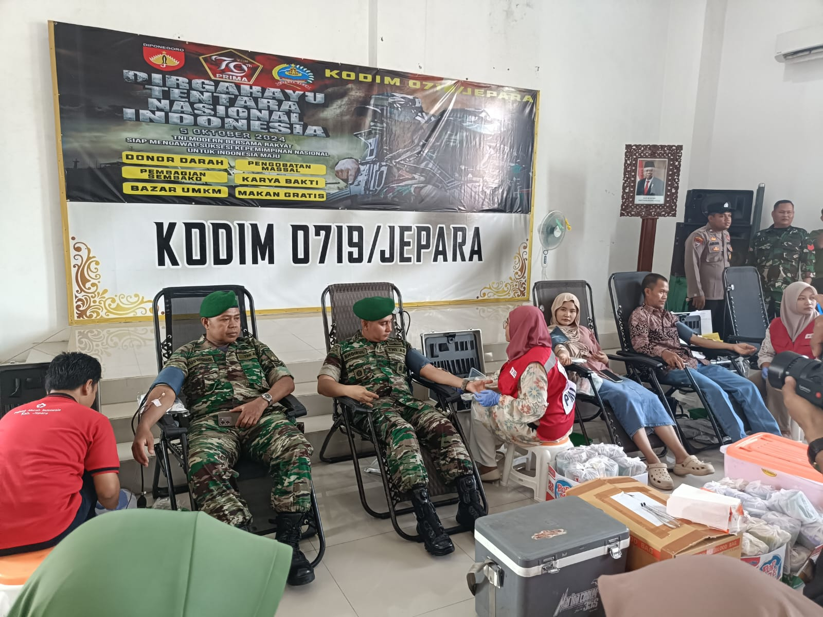 TNI ke-79, Kodim 0719/Jepara mengadakan kegiatan bakti sosial berupa donor darah, pengobatan massal, pembagian sembako, dan makan gratis. Acara yang digelar di Aula Kodim 0719/Jepara ini mendapat sambutan positif dari masyarakat sekitar, Minggu (22/09/24).